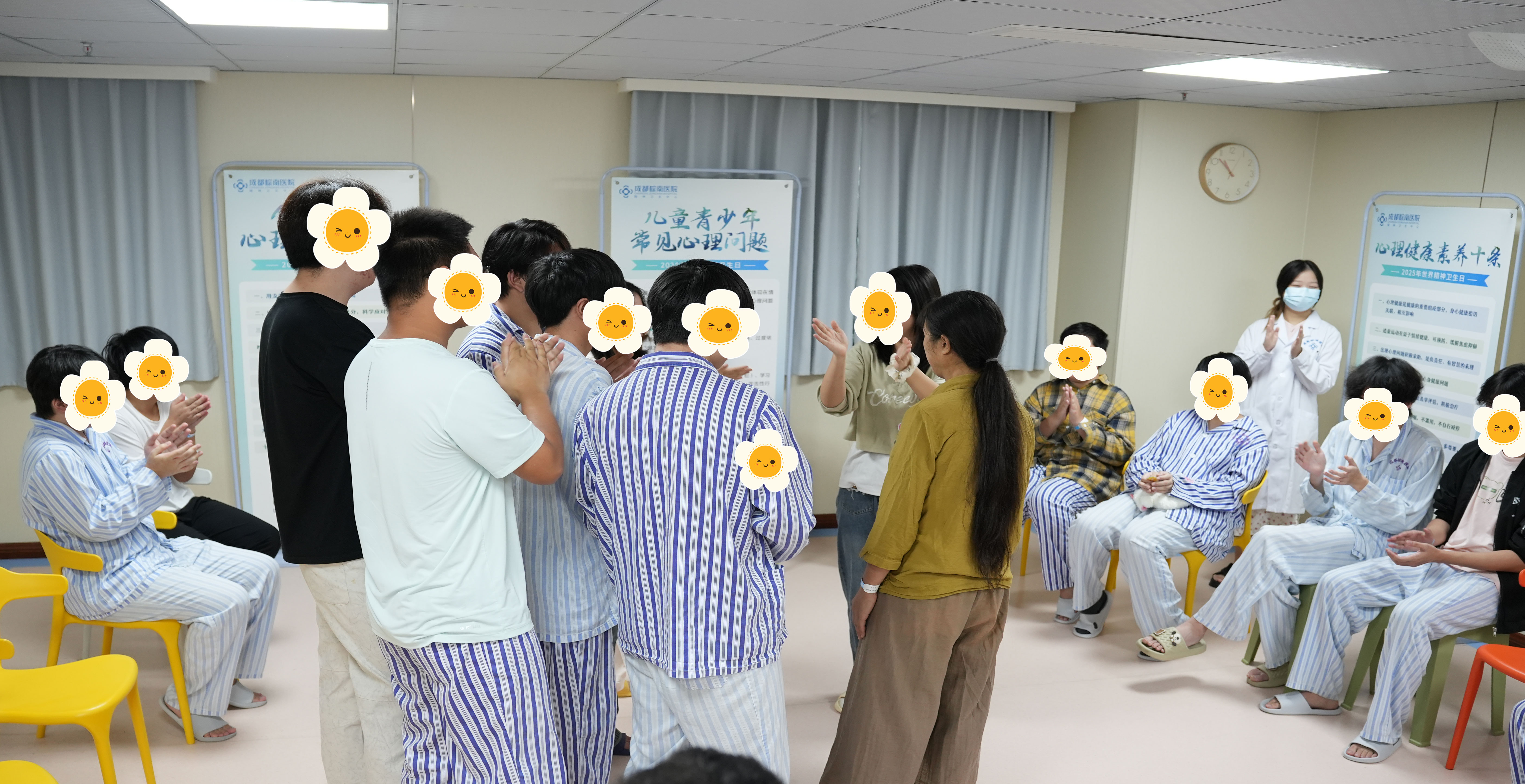 面向住院患者的主题团辅活动,是本次活动的疗愈亮点。该团辅方案由我院康复疗愈中心,基于积极心理学理论与团体心理诊疗方式设计,以觉察我的能量场为主题,带领参与患者重新链接内心资源,提升感知幸福的能力。